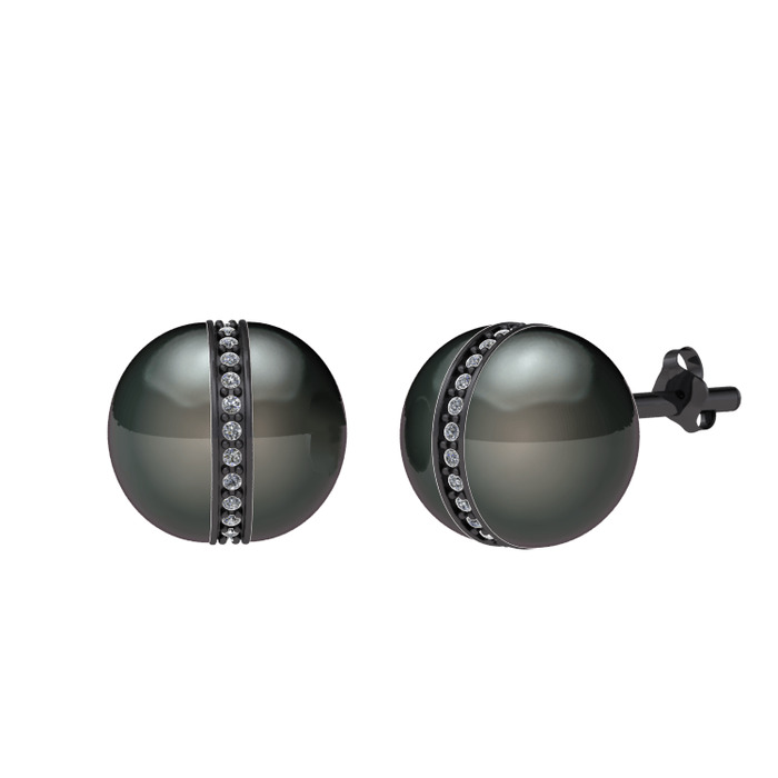 Siyah inci ve pırlanta 925 ayar siyah rodyum kaplama gümüş küpe (0.52 karat)