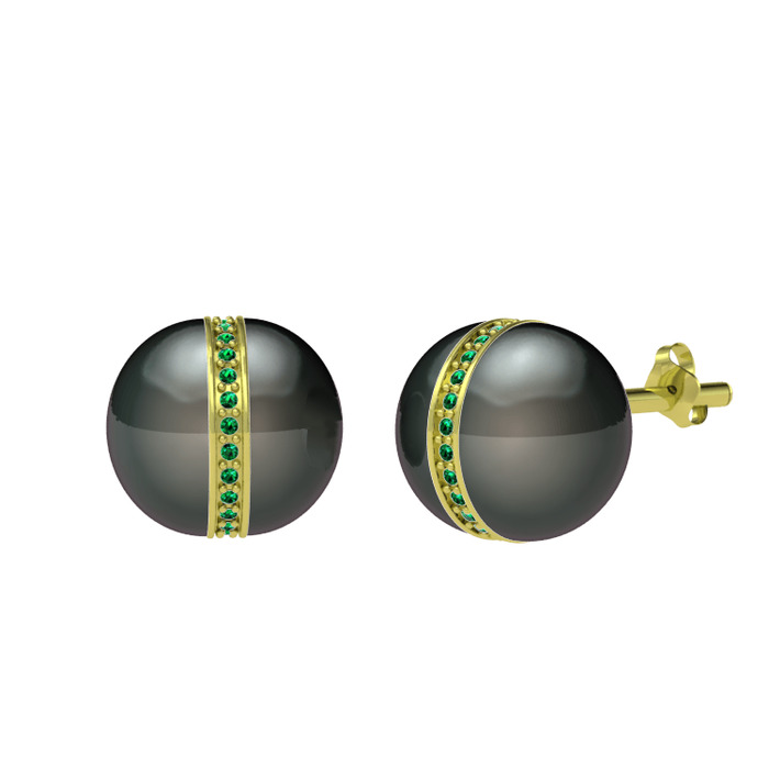 Siyah inci ve yeşil kuvars 14 ayar altın küpe