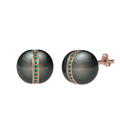 Siyah inci ve yeşil kuvars 14 ayar rose altın küpe