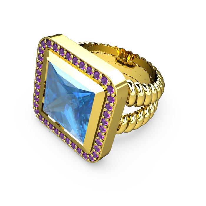 Akuamarin ve ametist 925 ayar altın kaplama gümüş yüzük