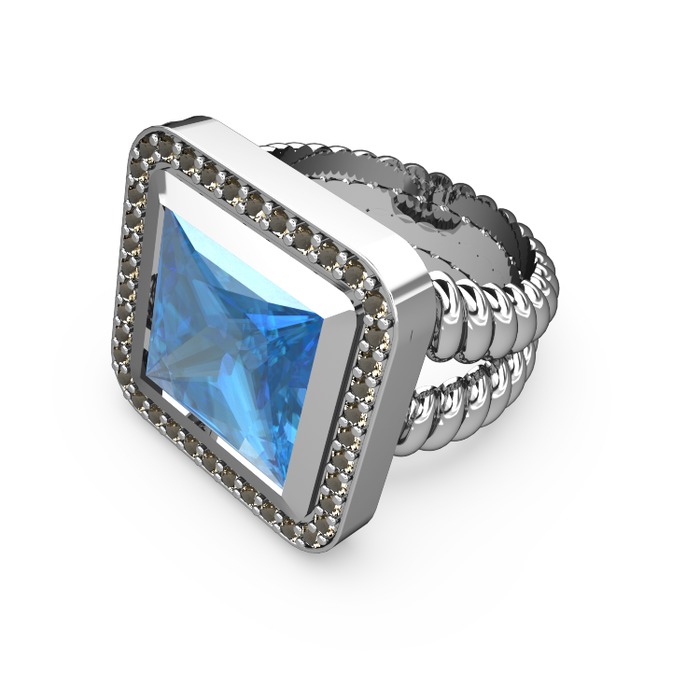 Akuamarin ve dumanlı kuvars 925 ayar gümüş yüzük