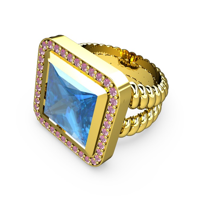 Akuamarin ve pembe kuvars 18 ayar altın yüzük