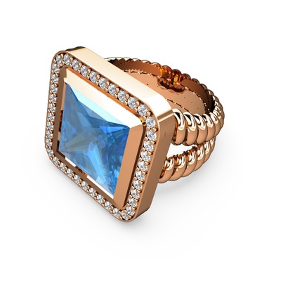 Akuamarin ve pırlanta 925 ayar rose altın kaplama gümüş yüzük (0.6 karat)