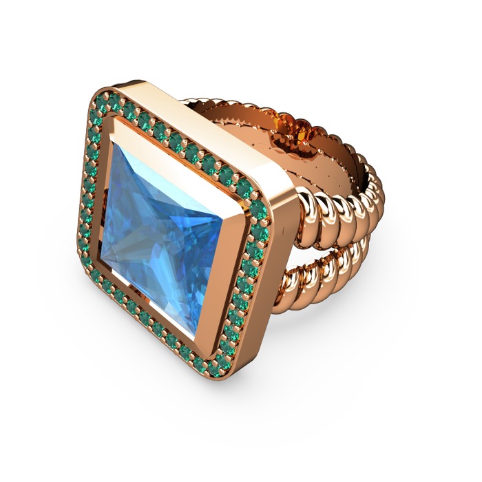 Akuamarin ve yeşil kuvars 18 ayar rose altın yüzük
