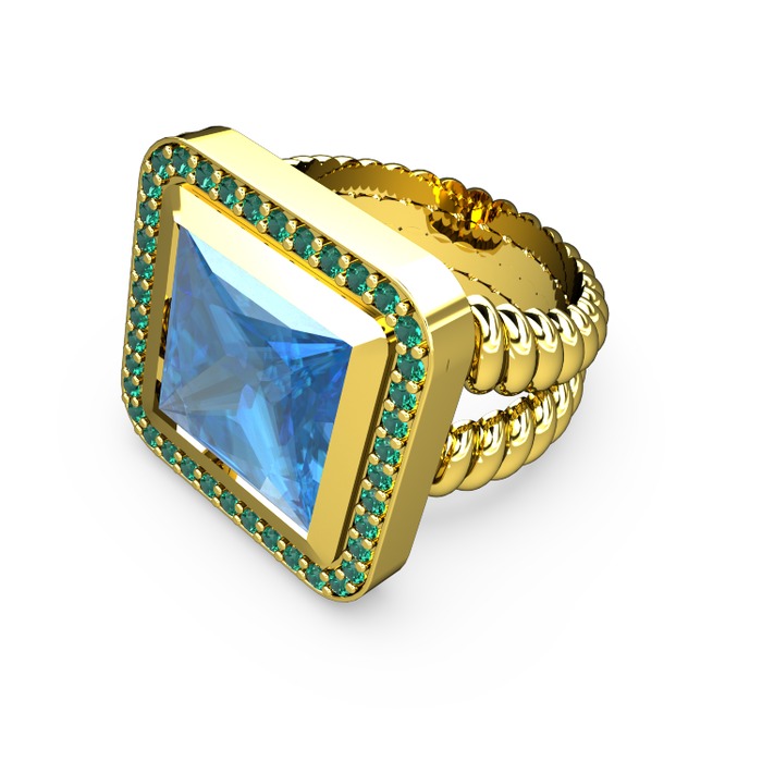 Akuamarin ve yeşil kuvars 8 ayar altın yüzük