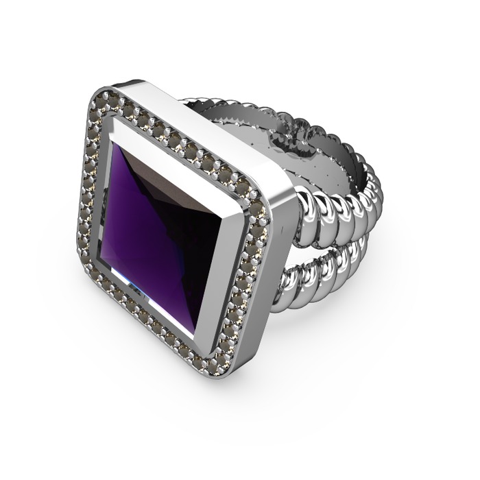 Ametist ve dumanlı kuvars 14 ayar beyaz altın yüzük