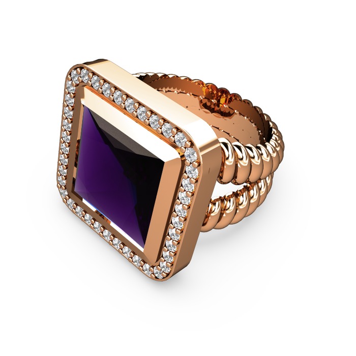 Ametist ve pırlanta 18 ayar rose altın yüzük (0.6 karat)
