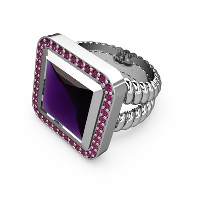 Ametist ve rodolit garnet 18 ayar beyaz altın yüzük