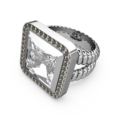 Beyaz zirkon ve dumanlı kuvars 14 ayar beyaz altın yüzük