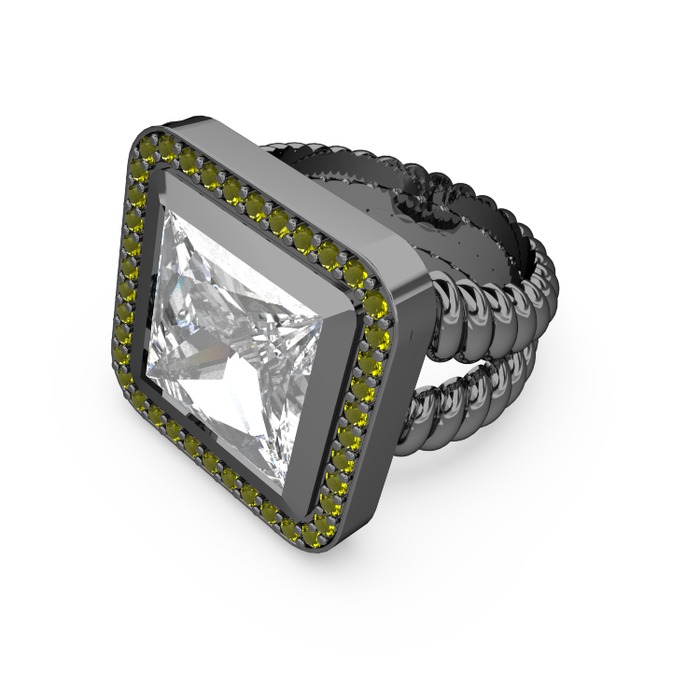 Beyaz zirkon ve peridot 925 ayar siyah rodyum kaplama gümüş yüzük