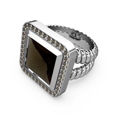 Dumanlı kuvars 8 ayar beyaz altın yüzük