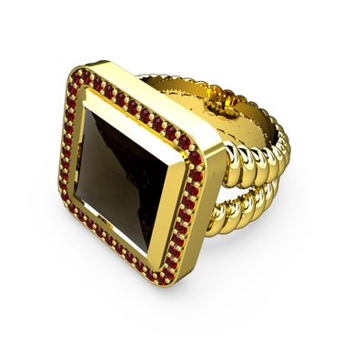 Dumanlı kuvars ve garnet 8 ayar altın yüzük