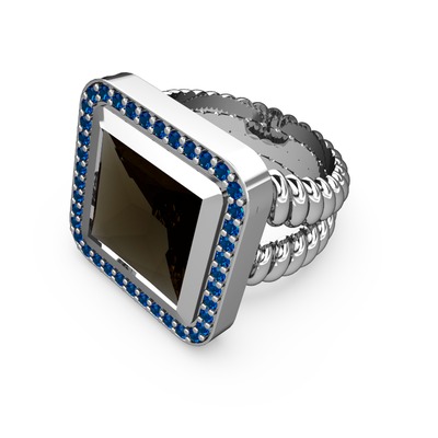 Dumanlı kuvars ve lab safir 18 ayar beyaz altın yüzük