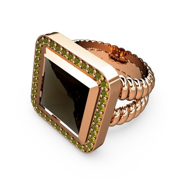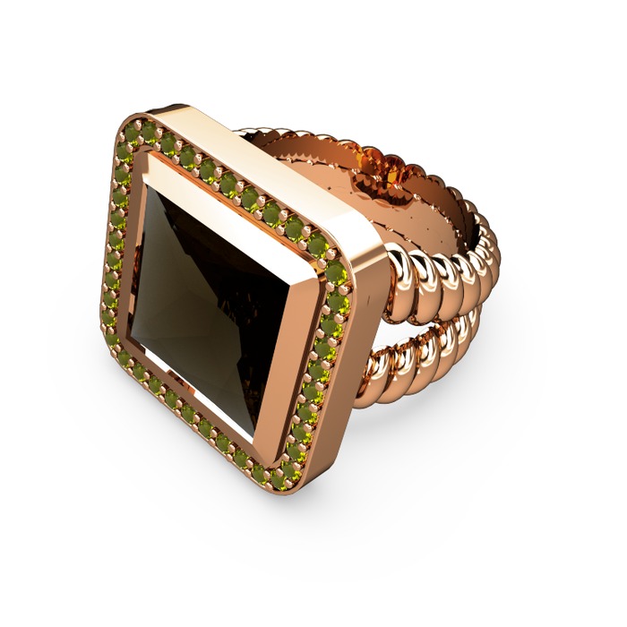 Dumanlı kuvars ve peridot 925 ayar rose altın kaplama gümüş yüzük