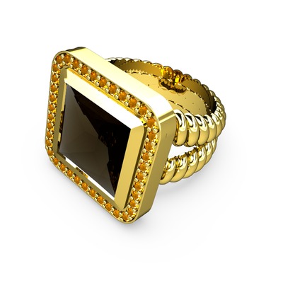 Dumanlı kuvars ve sitrin 14 ayar altın yüzük