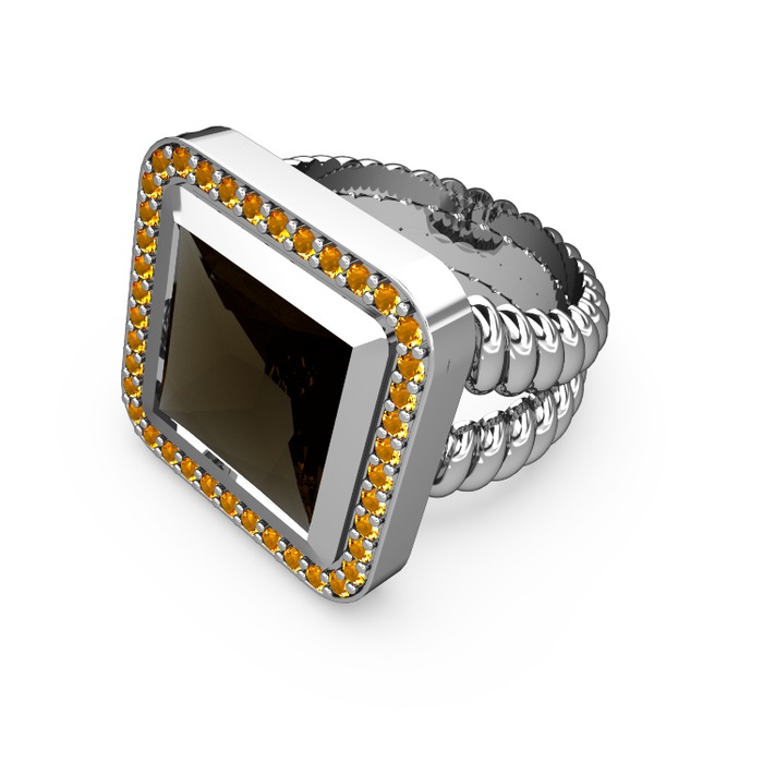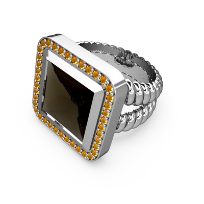 Dumanlı kuvars ve sitrin 14 ayar beyaz altın yüzük