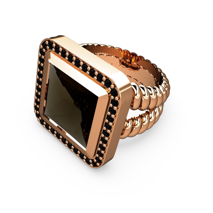 Dumanlı kuvars ve siyah zirkon 8 ayar rose altın yüzük