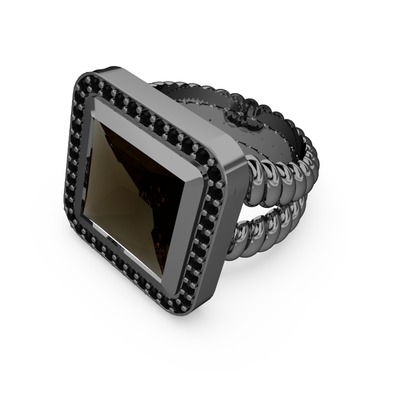 Dumanlı kuvars ve siyah zirkon 925 ayar siyah rodyum kaplama gümüş yüzük