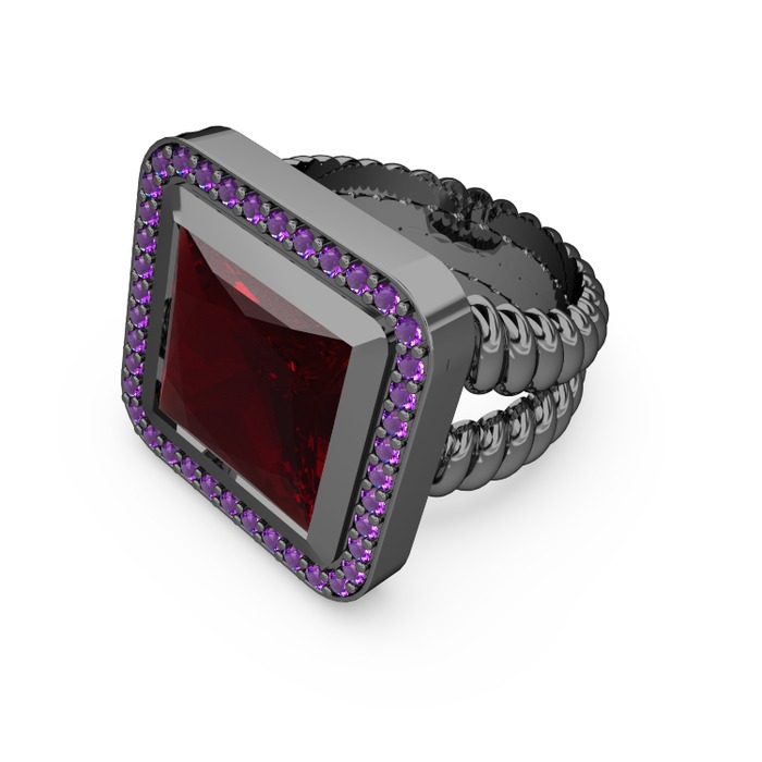 Garnet ve ametist 925 ayar siyah rodyum kaplama gümüş yüzük