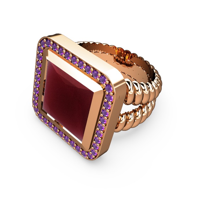 Kök yakut ve ametist 925 ayar rose altın kaplama gümüş yüzük