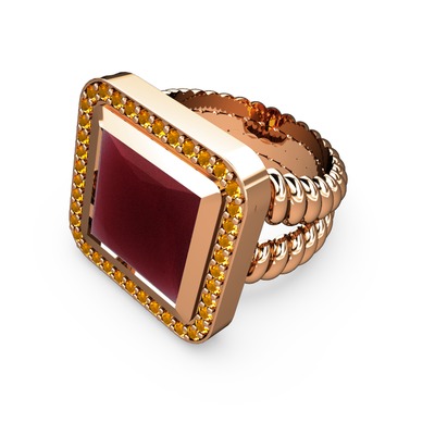 Kök yakut ve sitrin 14 ayar rose altın yüzük