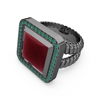 Kök yakut ve yeşil kuvars 925 ayar siyah rodyum kaplama gümüş yüzük