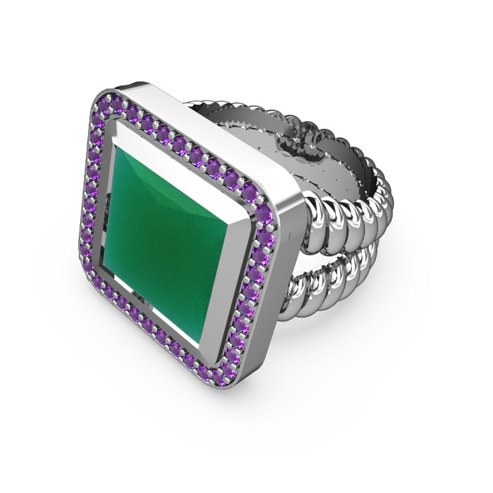 Kök zümrüt ve ametist 925 ayar gümüş yüzük