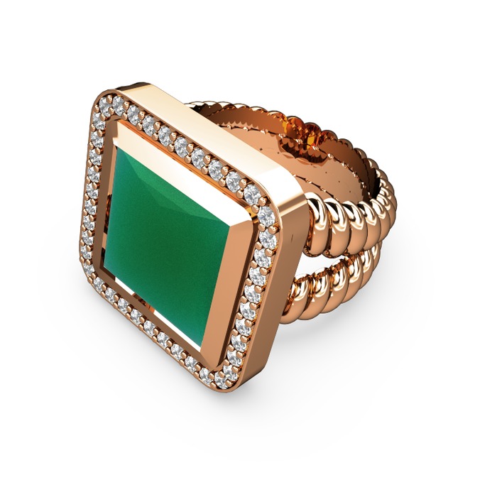 Kök zümrüt ve beyaz zirkon 18 ayar rose altın yüzük