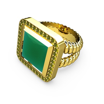 Kök zümrüt ve peridot 14 ayar altın yüzük