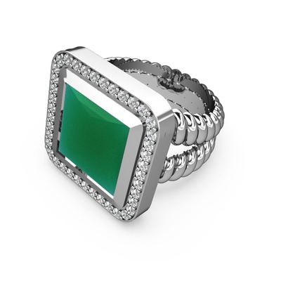Kök zümrüt ve pırlanta 18 ayar beyaz altın yüzük (0.6 karat)