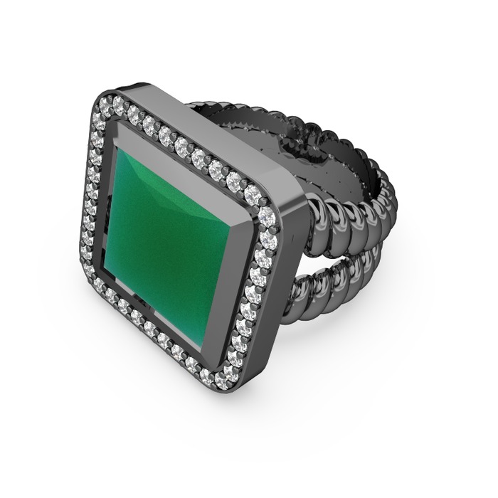 Kök zümrüt ve pırlanta 925 ayar siyah rodyum kaplama gümüş yüzük (0.6 karat)