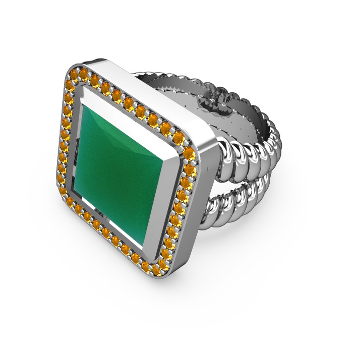 Kök zümrüt ve sitrin 14 ayar beyaz altın yüzük