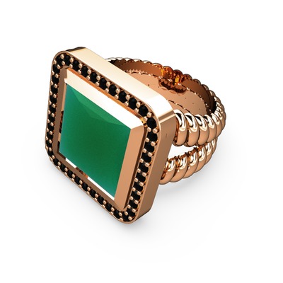 Kök zümrüt ve siyah zirkon 14 ayar rose altın yüzük