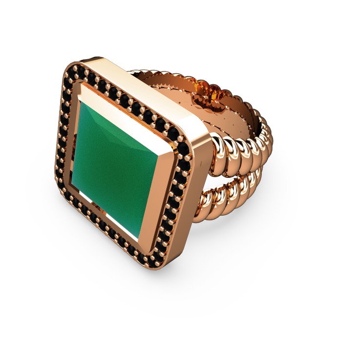 Kök zümrüt ve siyah zirkon 8 ayar rose altın yüzük