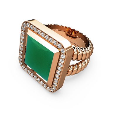 Kök zümrüt ve swarovski 14 ayar rose altın yüzük