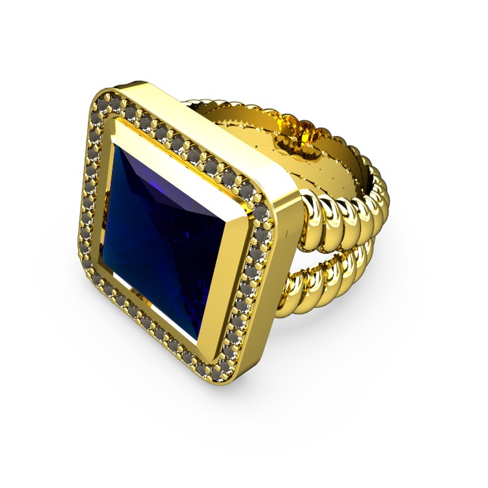 Lab safir ve dumanlı kuvars 14 ayar altın yüzük