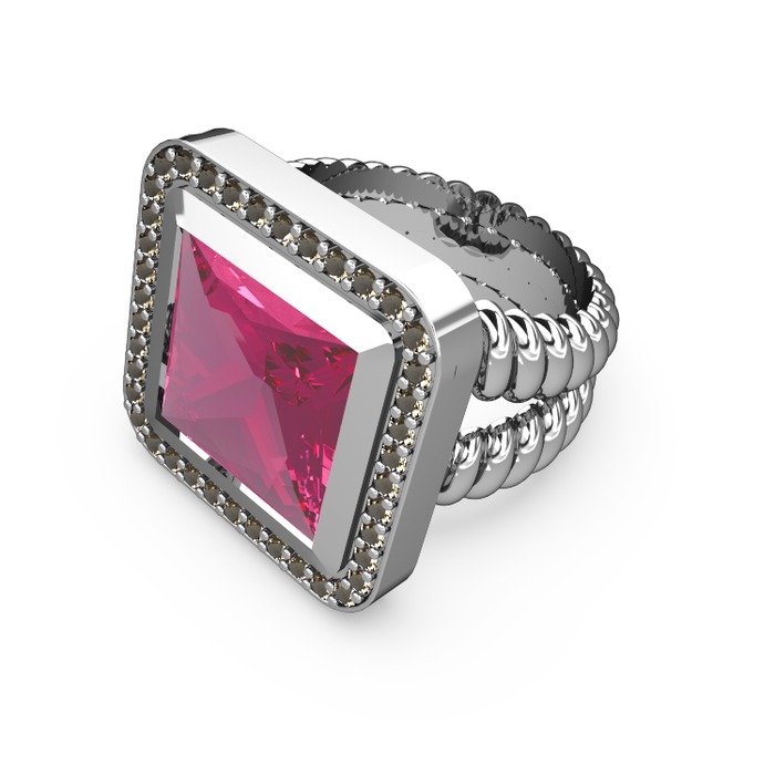 Pembe kuvars ve dumanlı kuvars 8 ayar beyaz altın yüzük