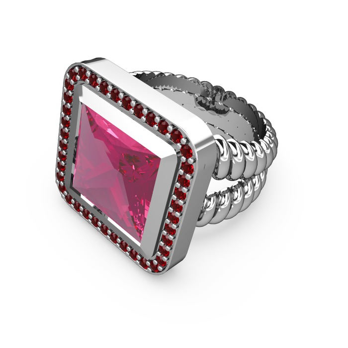 Pembe kuvars ve garnet 14 ayar beyaz altın yüzük