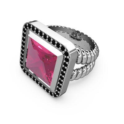 Pembe kuvars ve siyah zirkon 14 ayar beyaz altın yüzük
