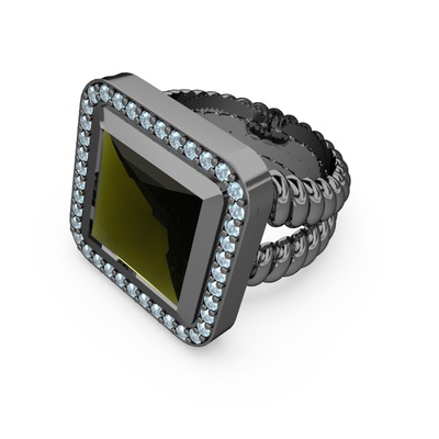Peridot ve akuamarin 925 ayar siyah rodyum kaplama gümüş yüzük