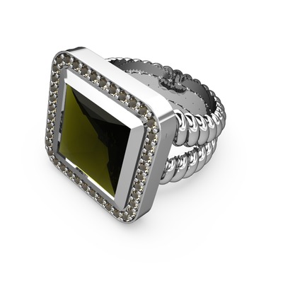 Peridot ve dumanlı kuvars 8 ayar beyaz altın yüzük