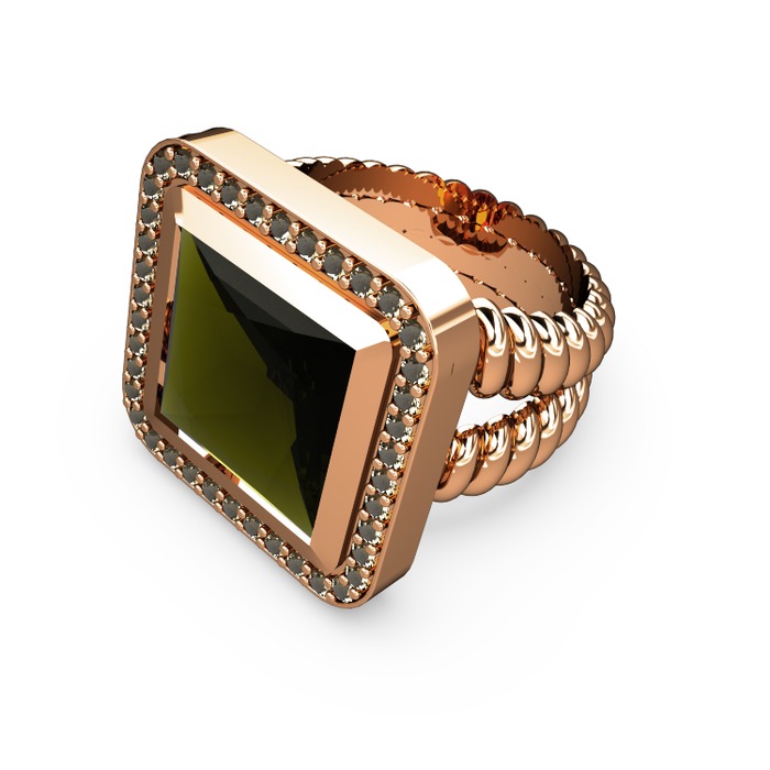 Peridot ve dumanlı kuvars 925 ayar rose altın kaplama gümüş yüzük