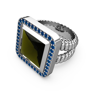 Peridot ve lab safir 14 ayar beyaz altın yüzük