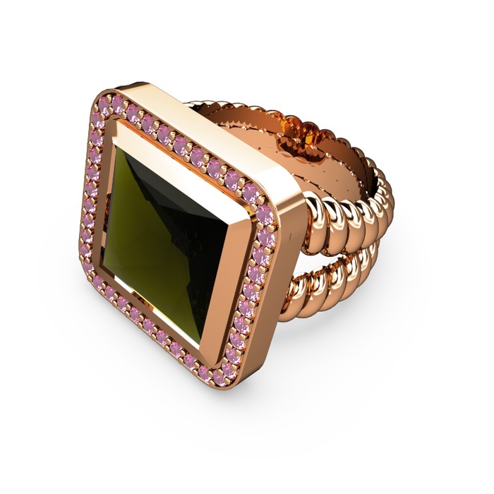 Peridot ve pembe kuvars 925 ayar rose altın kaplama gümüş yüzük