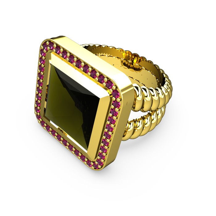 Peridot ve rodolit garnet 8 ayar altın yüzük