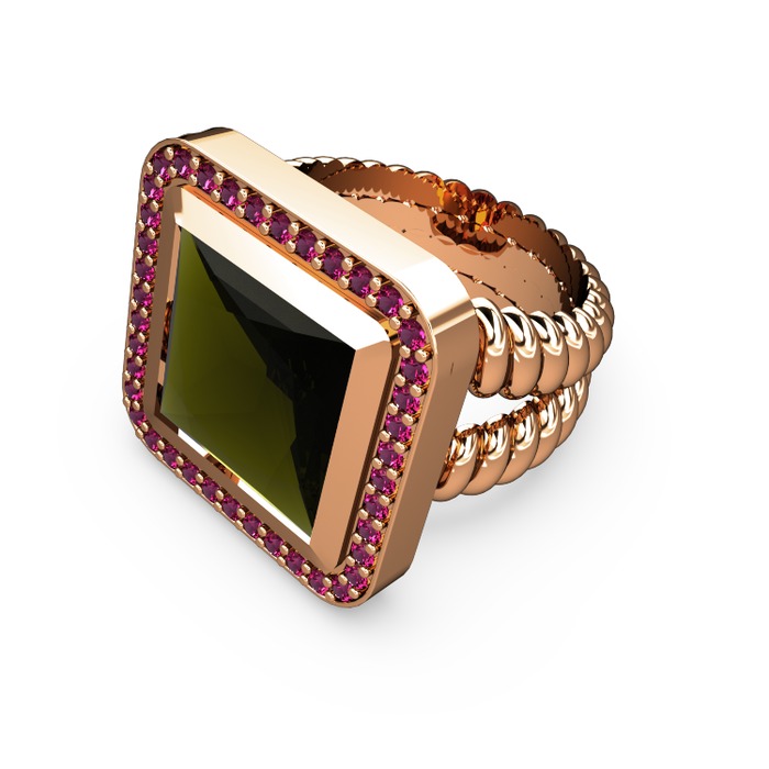 Peridot ve rodolit garnet 925 ayar rose altın kaplama gümüş yüzük