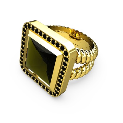 Peridot ve siyah zirkon 925 ayar altın kaplama gümüş yüzük
