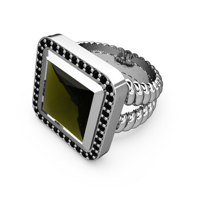 Peridot ve siyah zirkon 925 ayar gümüş yüzük