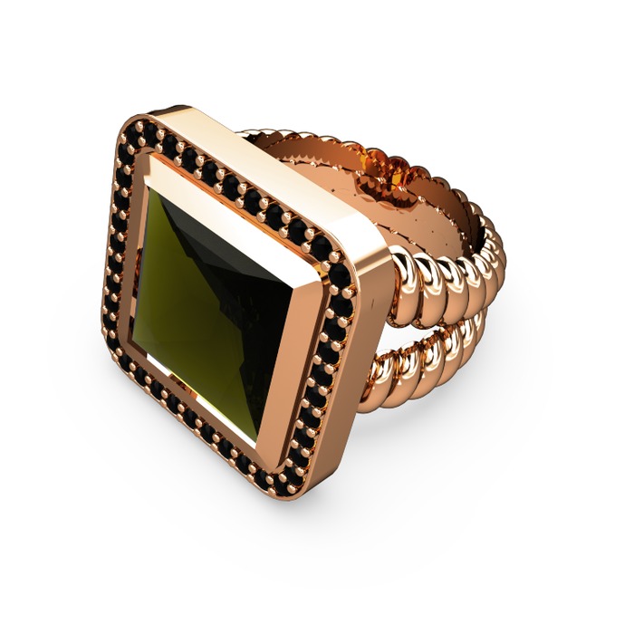 Peridot ve siyah zirkon 925 ayar rose altın kaplama gümüş yüzük