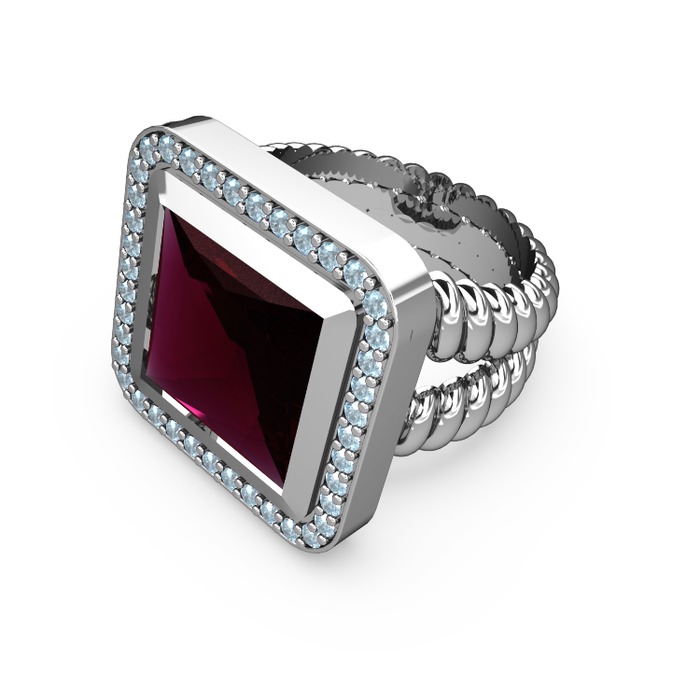 Rodolit garnet ve akuamarin 14 ayar beyaz altın yüzük